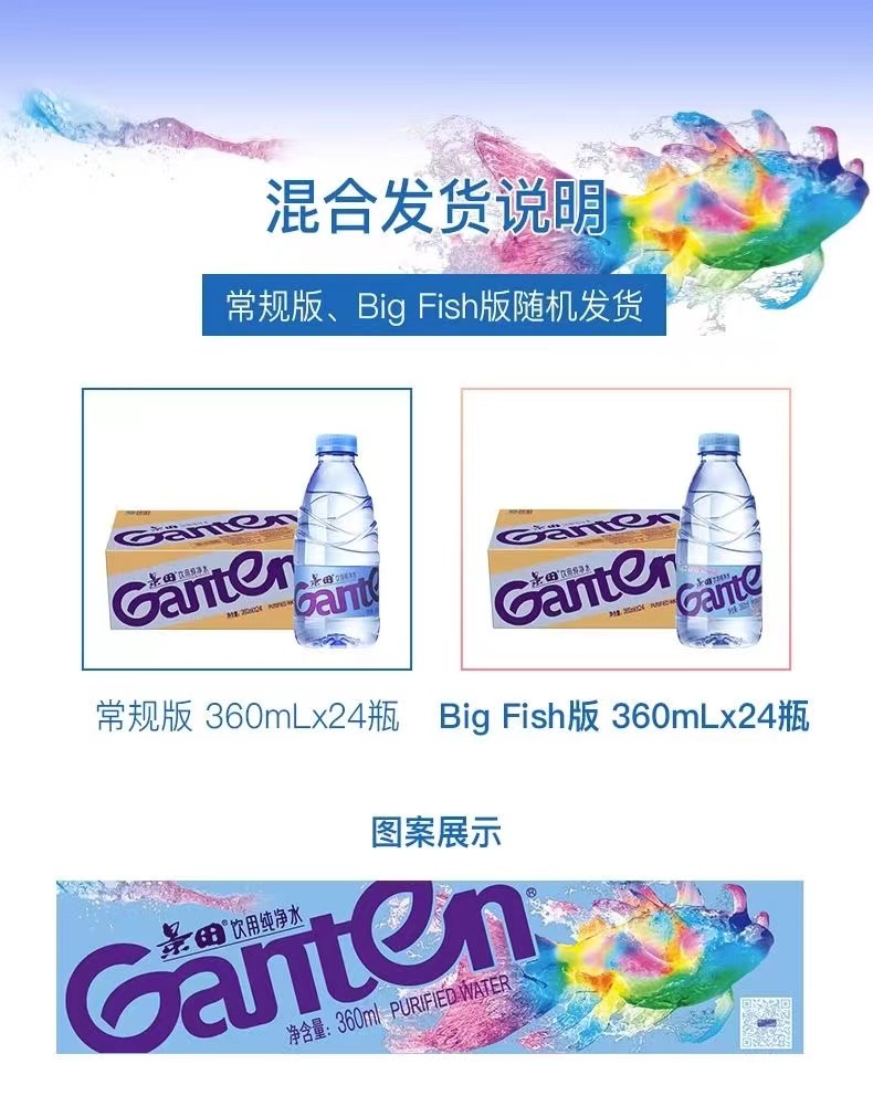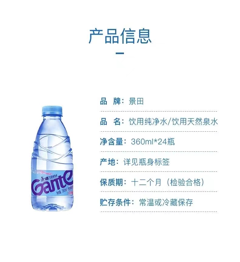 景田纯净水360ML*24瓶 【酒店专供】