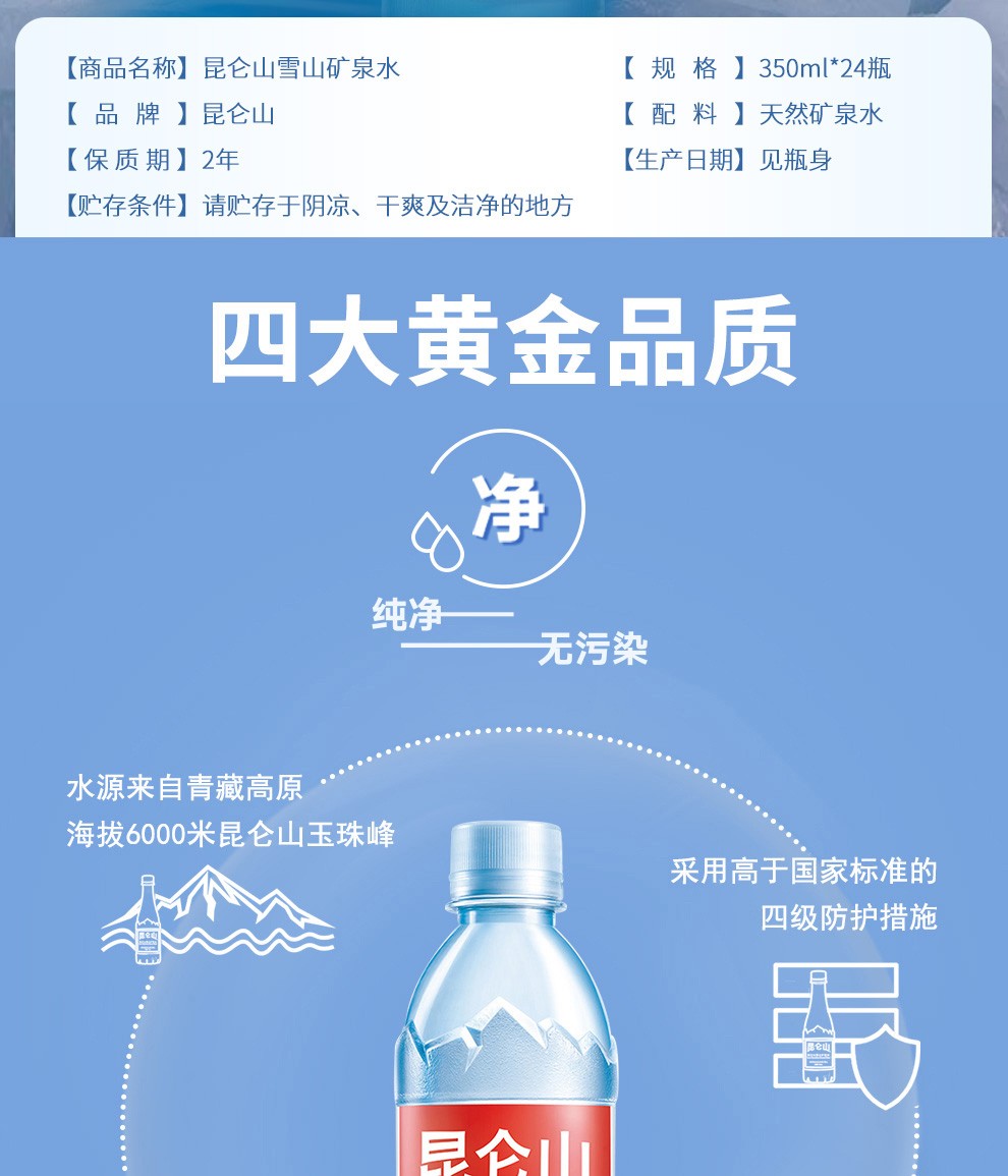 昆仑山雪山矿泉水 350ML*24瓶