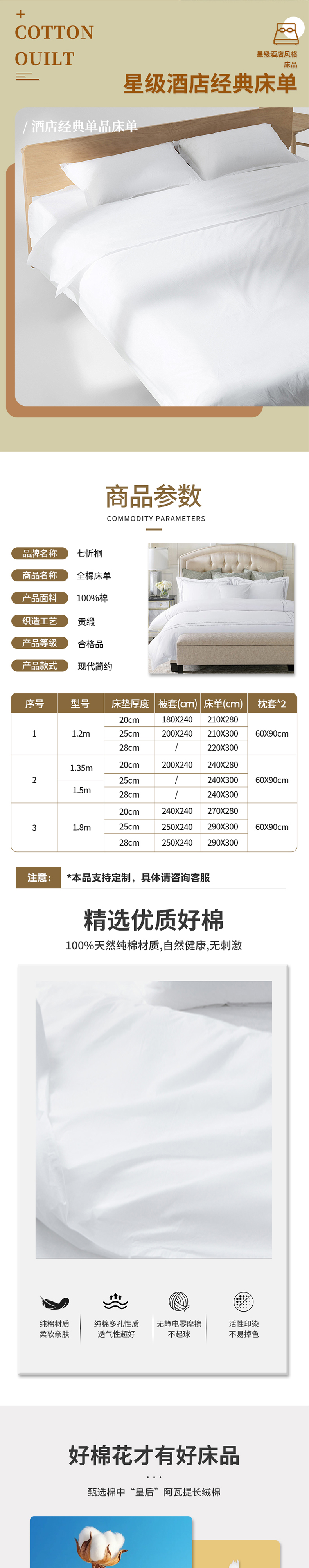 【床单】七忻桐40s*40s贡缎床单 适用1.2米/1.5米/2米床型